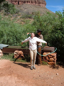 After a long walk back along the other side of the Colorado, we finally arrived at Phantom Ranch, a total of 9.8 miles from our starting point at the head of Bright Angel Trail. We dismounted our mules, me barely able to walk but Danielle happy as a clam. I could hardly walk; my ankles hurt, my knees ached, my butt was sore, and to top it all off I had a pretty bad crick in my neck. The ride was a ton of fun, but after 5 hours on top of the mule, I was ready for a relaxing afternoon at Phantom Ranch.