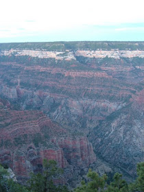 And away we went, on the 200 mile drive to the North Rim. We passed through a preposterous amount of nothingness, almost all of which was on Navajo Land. I have to say, anyone who tells you we didn't screw the Native Americans royally on this one is smoking some really good stuff. Eventually we made our way to Navajo Bridge, where we officially "crossed" the Grand Canyon. We stopped once or twice to check out some scenic overlooks, but in general it was an all out sprint to beat the sunset (our disaster at the general store had put us a little bit behind schedule). We arrived at the North Rim 15 minutes late, but still sprinted all the way down Lookout Trail (about half a mile), to take in some spectacular views in the twilight moments after sundown.